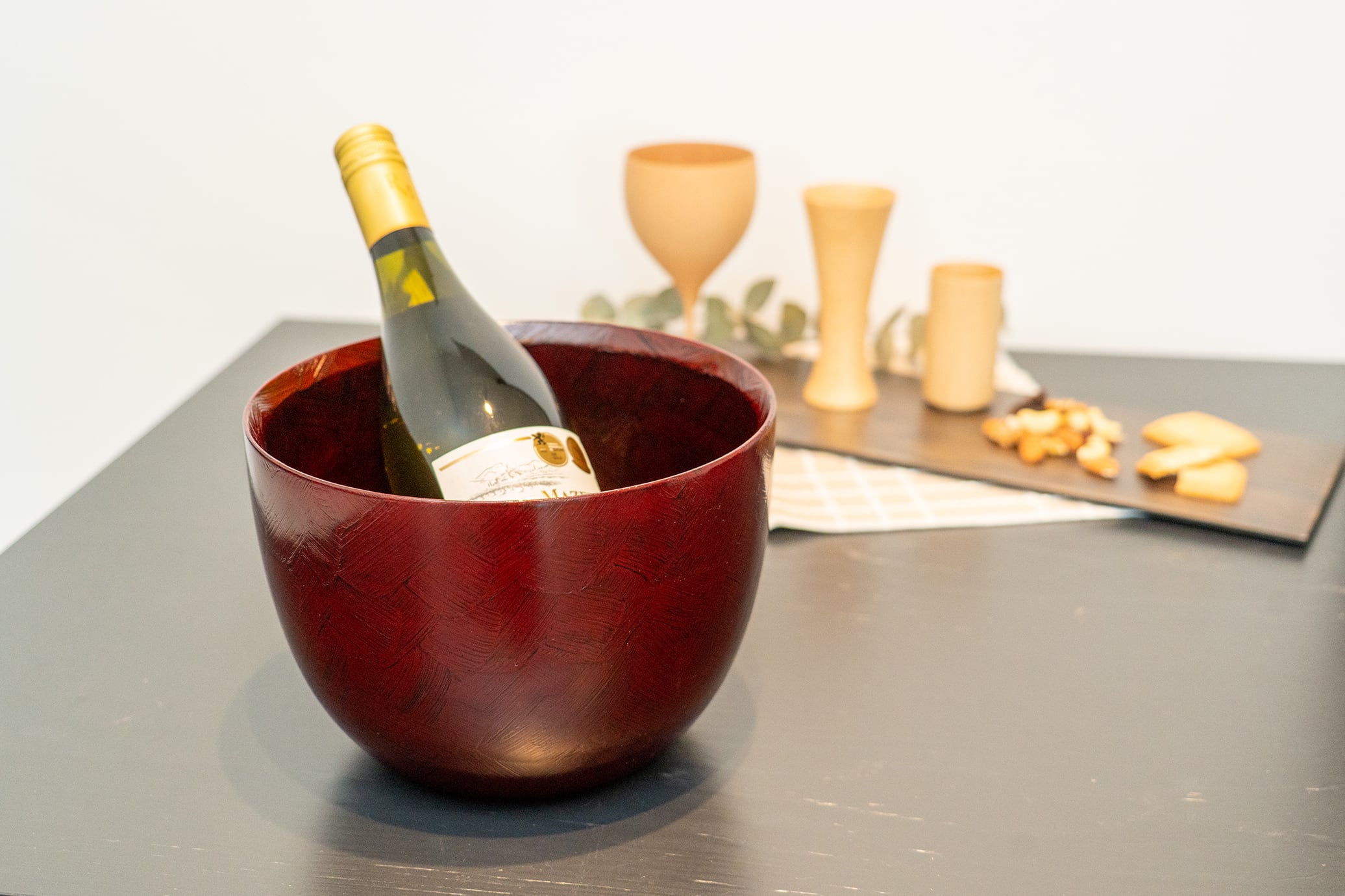リーズナブルにて堅牢な直圧成形の樹脂に錆文様を施した漆塗りのワインクーラです。